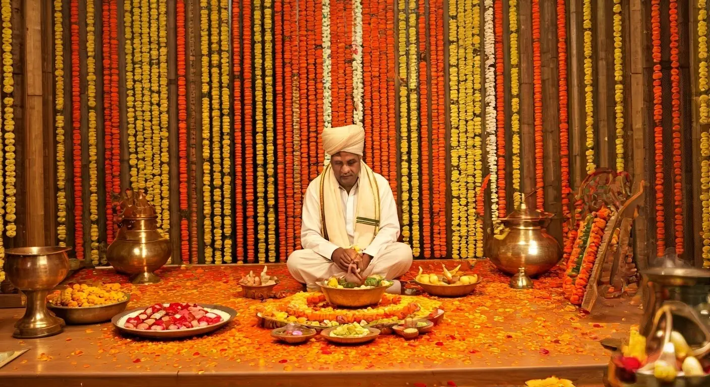 Vastu Shanti is a traditional Hindu ritual aimed at harmonizing the energies of a space according to Vastu Shastra, the ancient Indian science of architecture. The ritual is performed to eliminate negative energies and promote peace and prosperity within a home. It typically involves a detailed puja led by a knowledgeable pandit, who offers prayers and conducts specific ceremonies to appease the Vastu deities. Common elements include fire offerings, chanting of mantras, and the installation of Vastu Yantras. This ritual is particularly recommended when moving into a new home or after renovations to ensure a positive living environment.
